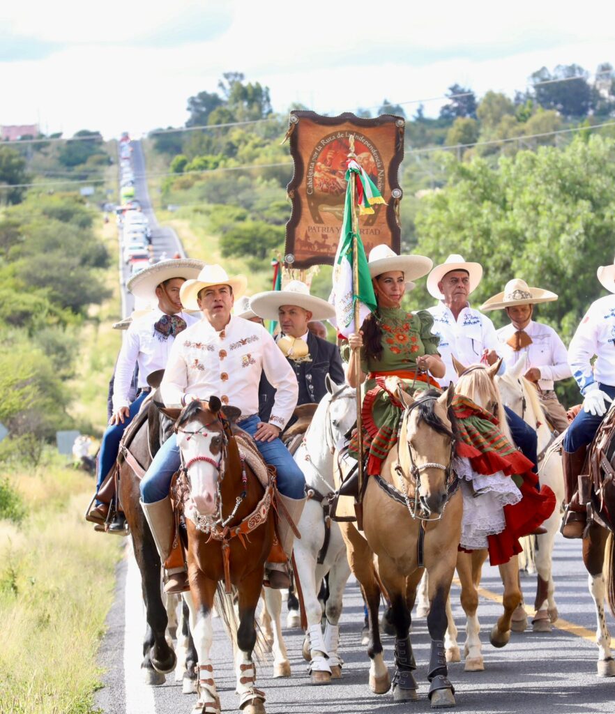 Como parte de los festejos, la Gobernadora también encabezó la ceremonia de arranque y recepción de la Cabalgata por la Ruta de la Independencia Nacional, que revive el recorrido de Hidalgo desde Dolores hasta Guanajuato capital para la toma de la Alhóndiga de Granaditas.