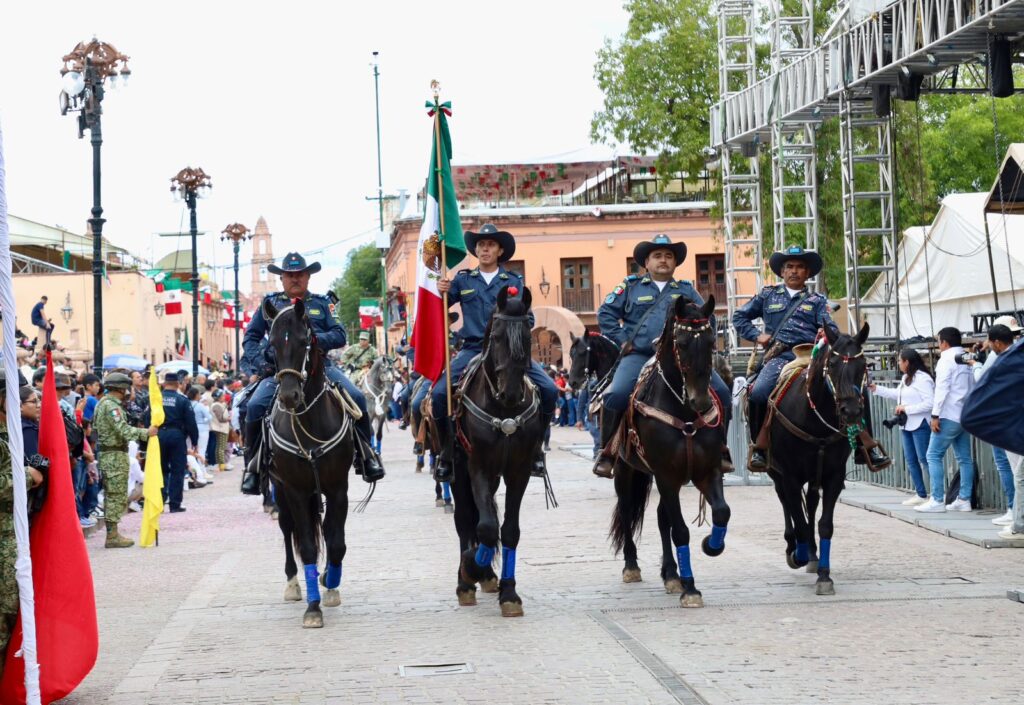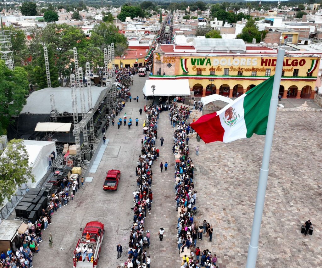 El 16 de septiembre, la Gobernadora encabezó el tradicional Desfile Cívico-Militar, acompañada de autoridades civiles y militares. La ceremonia inició con una caminata desde el Monumento a la Bandera hasta la zona centro de Dolores Hidalgo, donde miles de familias, estudiantes y visitantes se dieron cita para conmemorar la gesta heroica.