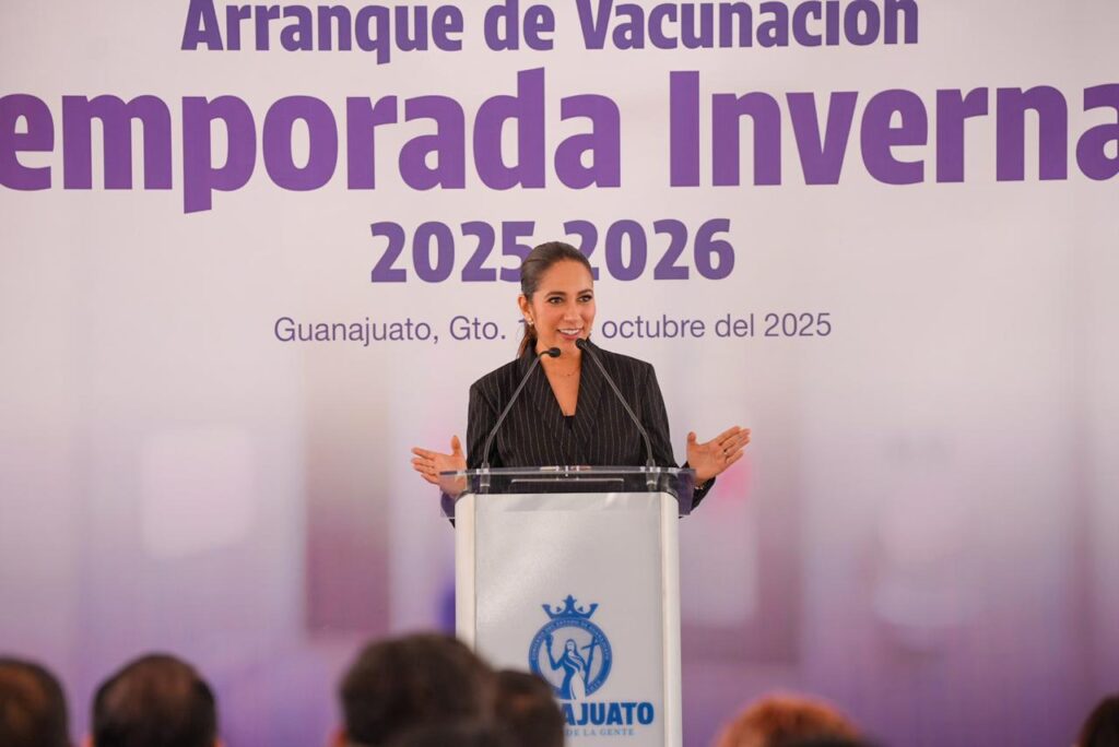 Guanajuato, Gto., 20 de octubre de 2025.– Con un llamado a cuidar la salud y proteger la vida, la Gobernadora de la Gente, Libia Dennise García Muñoz Ledo, puso en marcha la Jornada Estatal de Vacunación de la Temporada Invernal 2025–2026, que tiene como meta aplicar más de 2.4 millones de dosis en todo el estado.