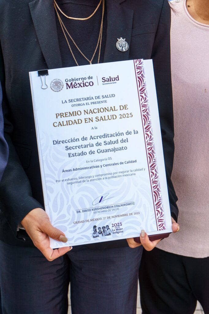 Ciudad de México, 29 de noviembre de 2025.– Guanajuato volvió a colocarse como un referente nacional en materia de salud pública al recibir tres distinciones en los Premios Nacionales de Calidad en Salud y al Mérito por la Mejora Continua 2025, otorgados por la Secretaría de Salud Federal.